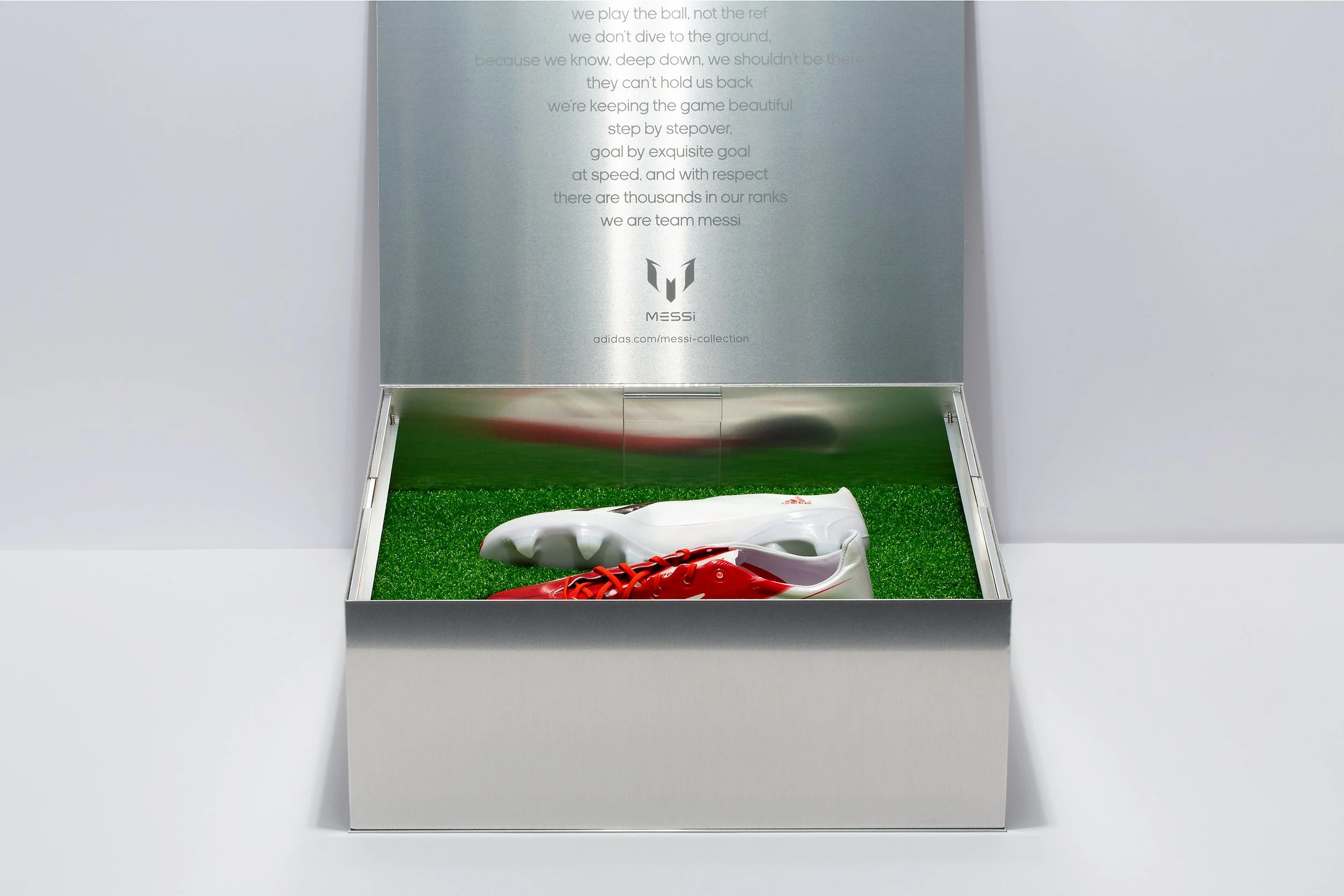 Limited-edition presentation boxes created to showcase the F50 adiZero — Lionel Messi’s signature adidas boots. Distributed to Messi himself, his family, key media and influencers, each pair was housed in a premium case designed to reflect the boot’s elite status. Displayed on artificial turf alongside four miniature Ballon d'Or trophies, celebrating Messi's record-breaking achievements.
